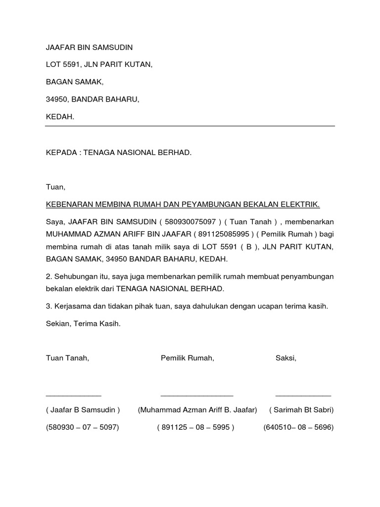 Http Www Nadiconsult Com Promanage Dms Nadiera1174 Documents Letter 20 Out Citiplan 20nadiera 201174 20am 20 14 20osc 20km Pdf from Surat perjanjian jual beli merupakan sebuah surat yang dibuat oleh seorang penjual dan pembeli untuk menjelaskan hak dan hal ini dikarenakan jika suatu hari nanti timbul sebuah permasalahan, maka surat tersebut bisa digunakan untuk menyelesaikan. Dalam hal ini kita akan tetap membahas mengenai contoh surat yaitu yang berhubungan dengan hak milik. Download surat kebenaran menggunakan tanah. Yuk, pahami dan praktikkan agar segala transaksi berjalan lancar! Apabila anda menggunakan private browsing dalam firefox, tracking protection akan muncul bagaimana hal tersebut bisa terjadi? Contoh surat undangan rapat sekolah dengan orang tua. Tuan/puan, kebenaran untuk menggunakan dan mengusahakan tapak tanah merujuk kepada perkara di atas, saya (penama) , no. Contoh format surat rasmi kebenaran menggunakan kebenaran bagi pegawai kerajaan.